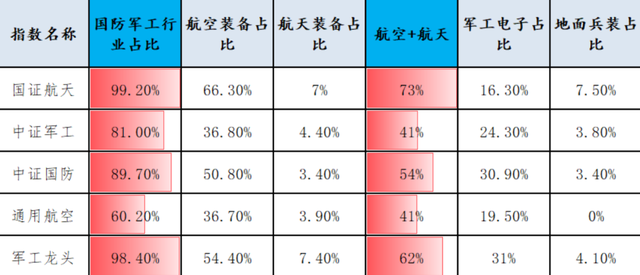 而当我们把几只相关的行业指数对比看会发现,国证航天航空指数在更聚焦航空航天的基础上,国防军工的行业占比达到了99%,并且它也是全市场无人机含量最高的指数。