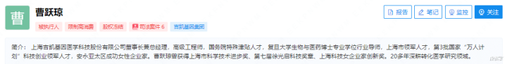 最近又有一家VC/PE把吉凯基因告上法庭,剑指曹跃琼。企查查APP上,曹跃琼身披“被执行人”、“限高”、“股权冻结”等标签,复旦大学女科学家估计做梦都没想到,“她创业钻研技术,明明是要改变人类未来命运的,却改变了她个人的命运,背了一身负债。”